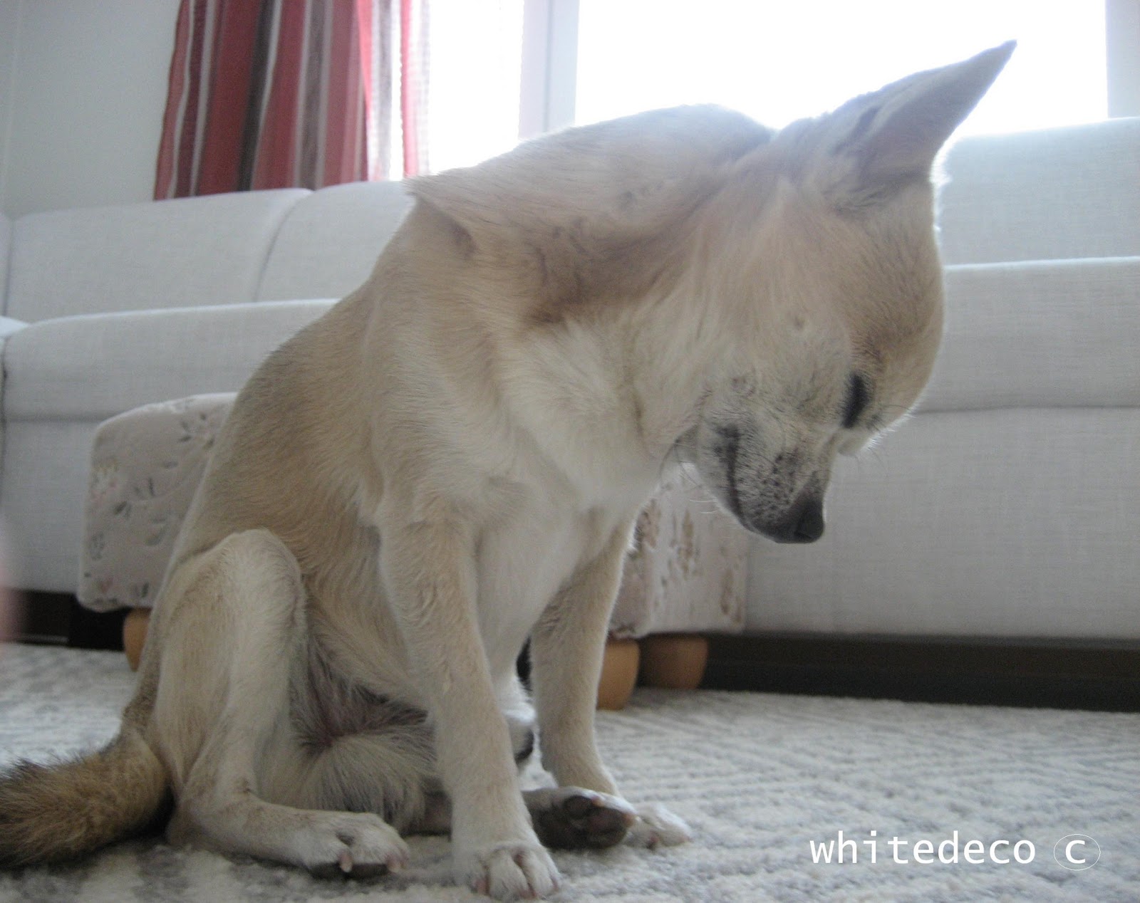 Tämä koira toimi minulla assarina tämänpäivän kuvauksissa eli sisustusassistenttina, arvon herra piti kirjaimellisesti työntää tuohon kuvaa töröttämään. Ei ole kauhean motivoitunut assari. Uutta hakuun!